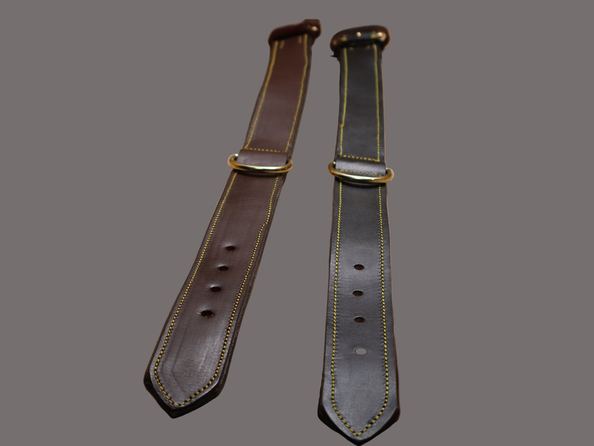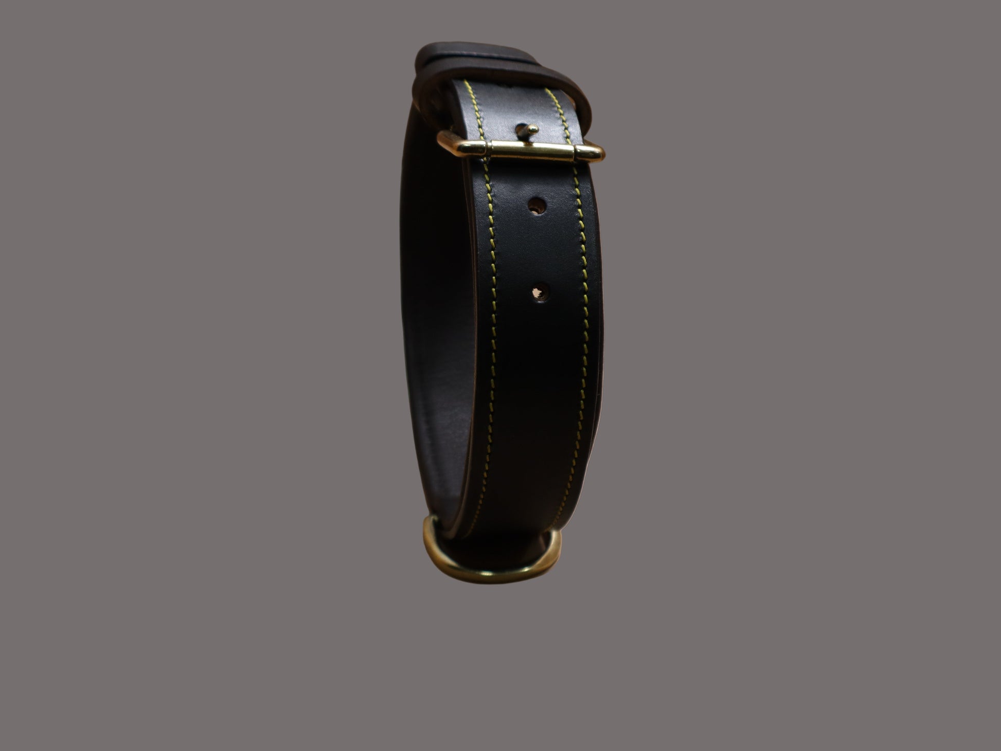 Crafted from durable cowhide leather, this dog collar features a golden buckle and double stitching for exceptional strength. Both the top and underside are made of high-quality leather, ensuring comfort and longevity.