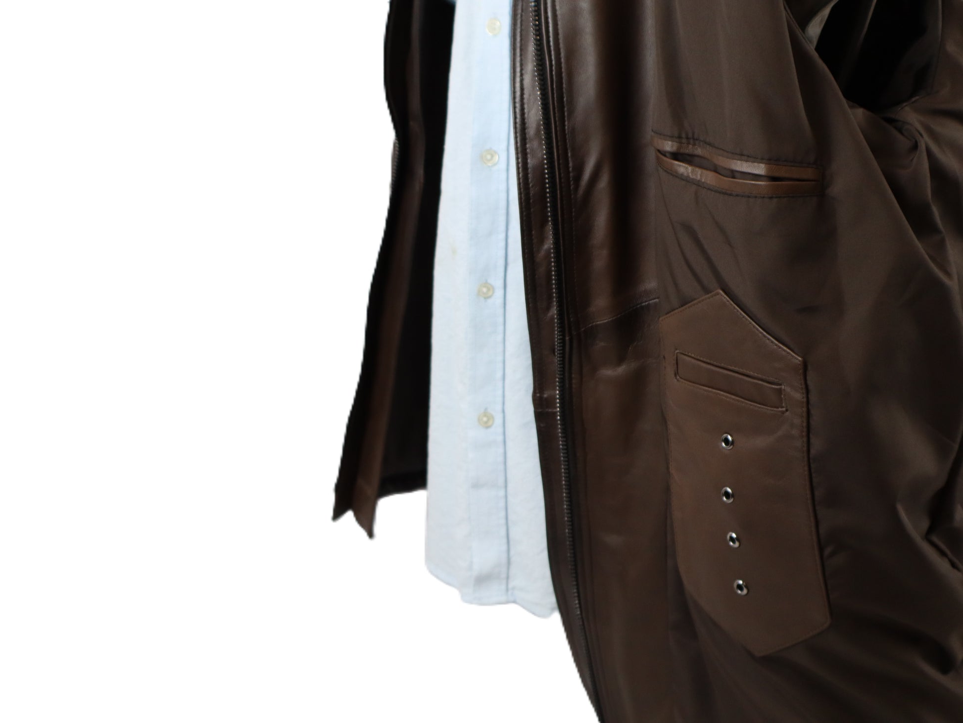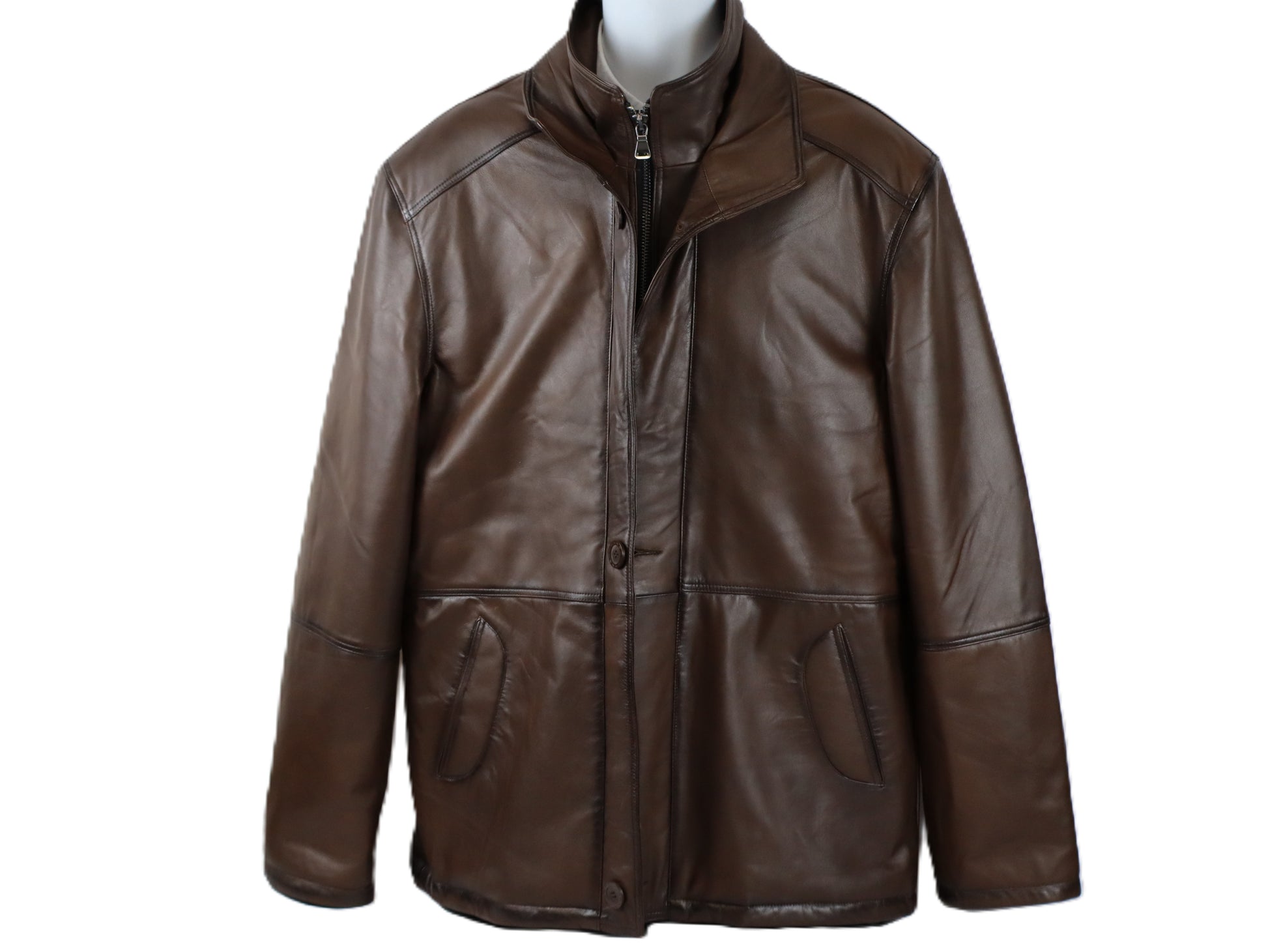 Crafted from supple lamb leather, this men's car coat delivers refined sophistication with practical functionality. The design features strategically placed hand pockets, an interior pocket for essentials, and a dedicated cell phone pocket—ideal for the modern professional. Rich brown tones and rich black expert construction make this a versatile layer that transitions seamlessly from office to weekend wear.