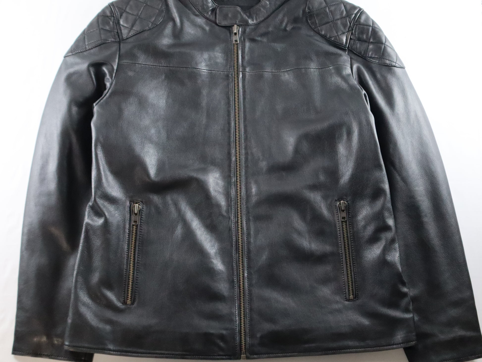 Crafted from supple, high-quality leather, this men's moto-style cafe racer jacket combines classic design with practical functionality. Multiple inner and outer zippered pockets provide secure storage for essentials, while the soft leather construction ensures exceptional comfort throughout the day. Finished edges are deliberately antiqued to evoke a timeless vintage aesthetic, giving the jacket character and depth. The result is a refined piece that balances authentic motorcycle styling with wearable sophistication—ideal for those who appreciate quality craftsmanship and enduring style.